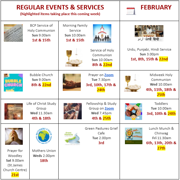 10.00am - Service of Holy Communion. The First Sunday of Lent. Led by Rev’d Richard Christopher. This week’s Bible readings will be Romans 5: 12-19 and Matthew 4: 1-11. A video recording of the service will be uploaded to the website at: https://www.youtube.com/@stjohnswoodley