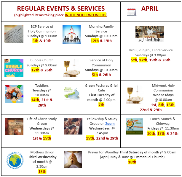 THIS PAGE WILL BE UPDATED ON FRIDAY 17TH APRIL 2026. PLEASE NOTE THE CHURCH OFFICE WILL BE CLOSED FROM 3RD - 10TH APRIL.